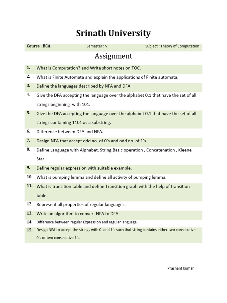 TOC Assignment for BCA Semester V | PDF