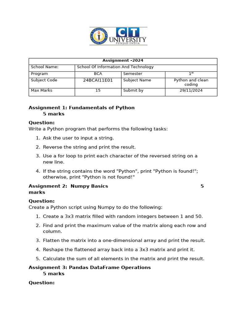 Python Assignments for BCA Semester 1 | PDF