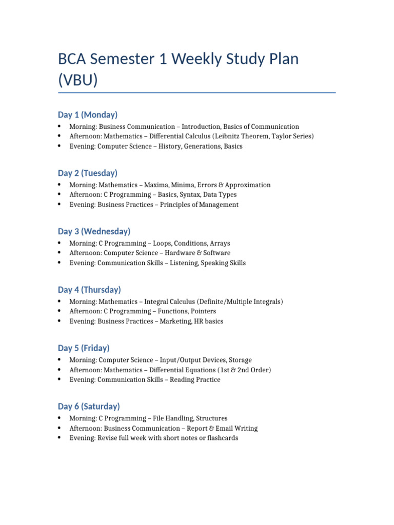 BCA Semester 1 Study Plan in Gujarati | PDF