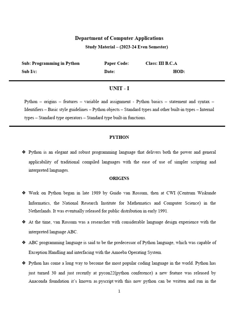 Based on this image's title: “Python Programming for BCA Semester VI | PDF | Scripting Language ...