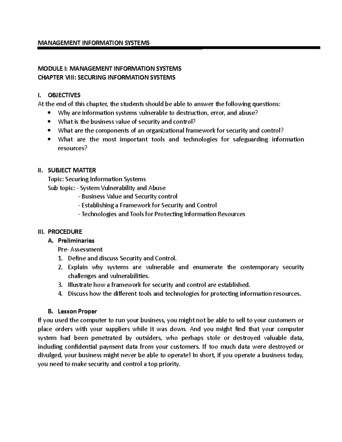 8, questions - MANAGEMENT INFORMATION SYSTEMS MODULE I: MANAGEMENT ...