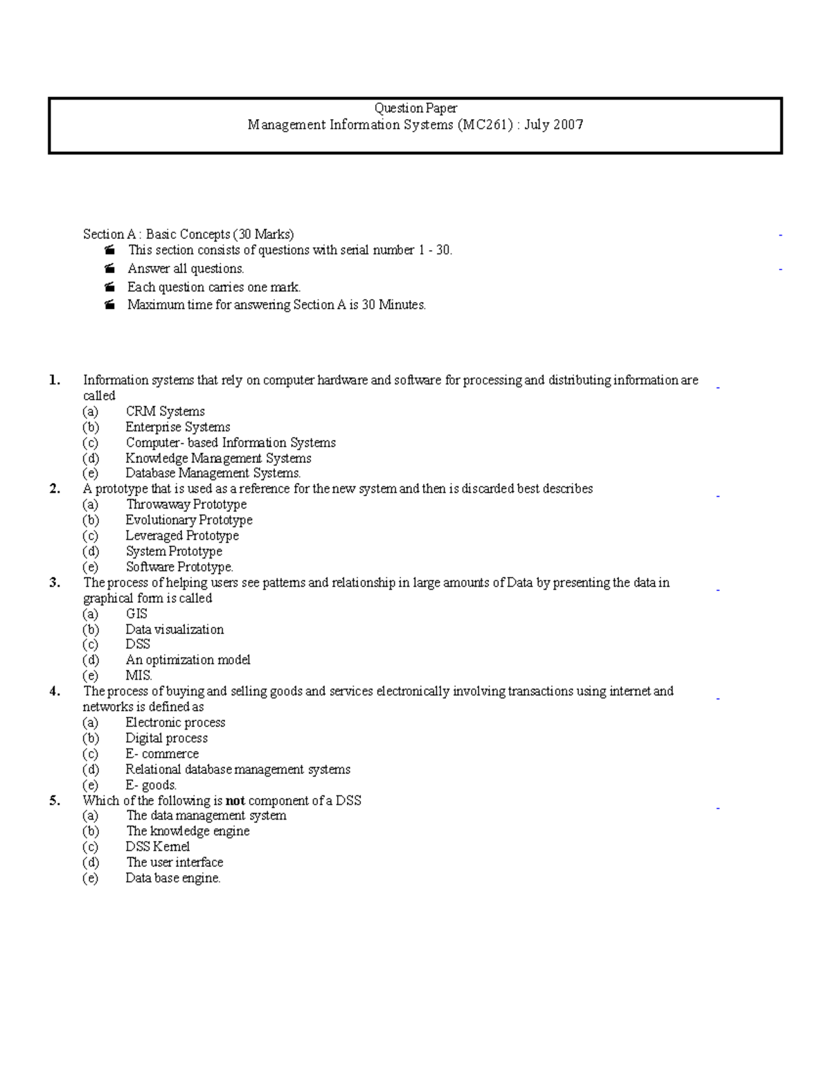 Management-Information Systems-0107 - Question Paper Management ...