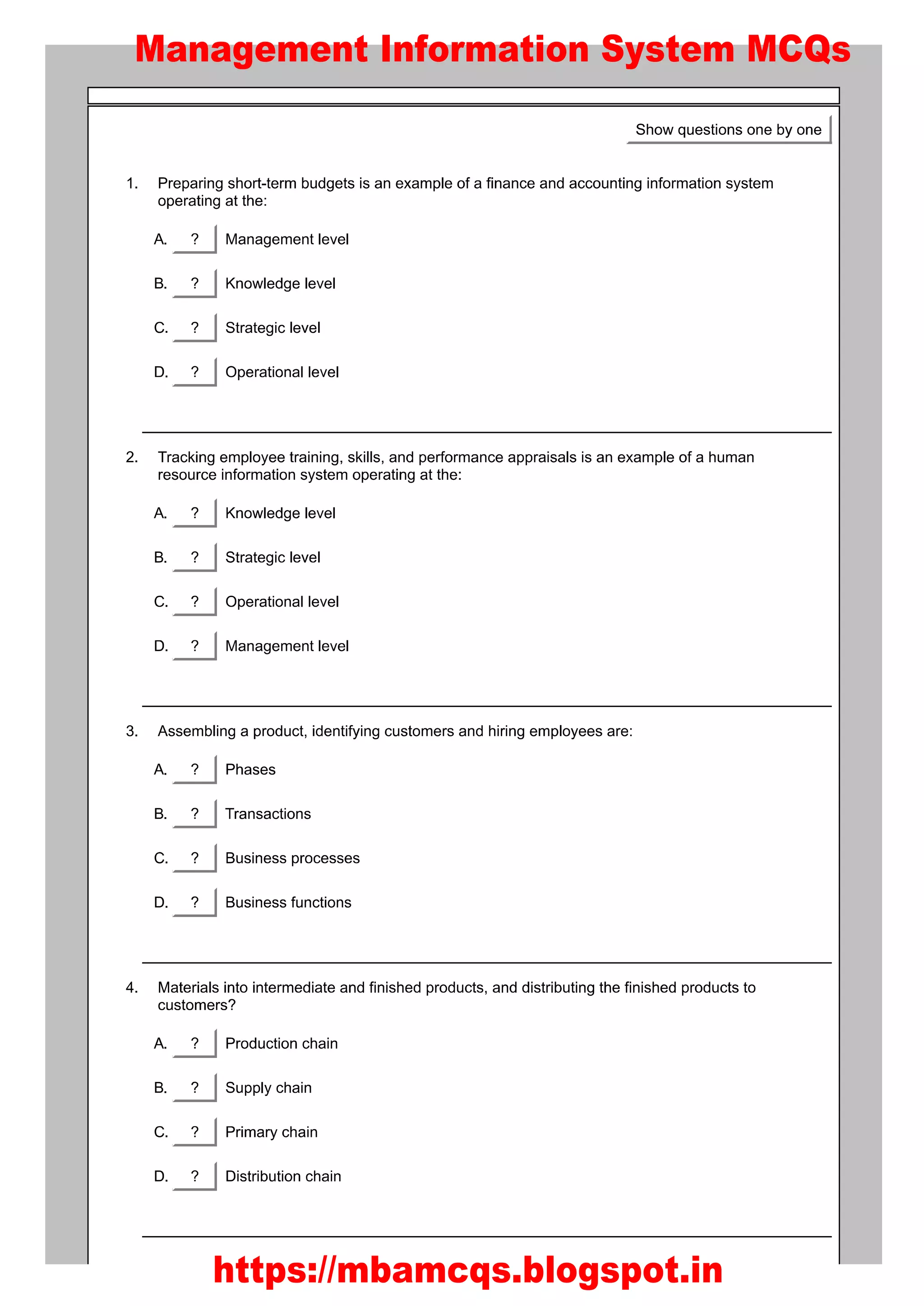 Management information system Solved MCQs [set-6] McqMate.com | PDF ...