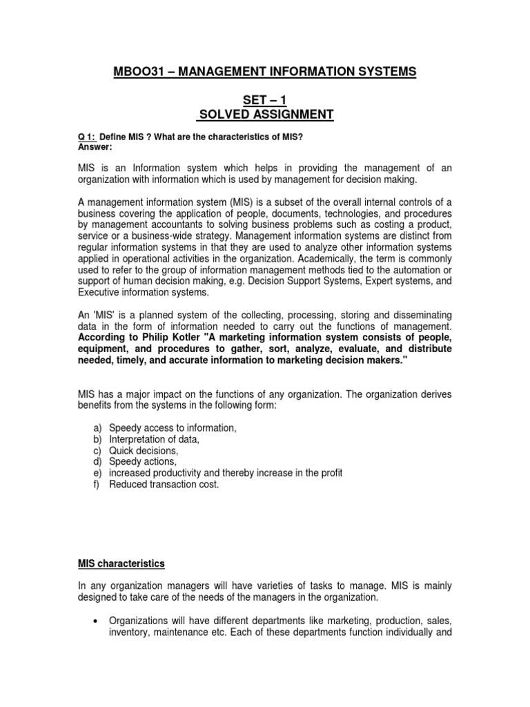 MBOO31 - Management Information Systems SET - 1 Solved Assignment | PDF ...