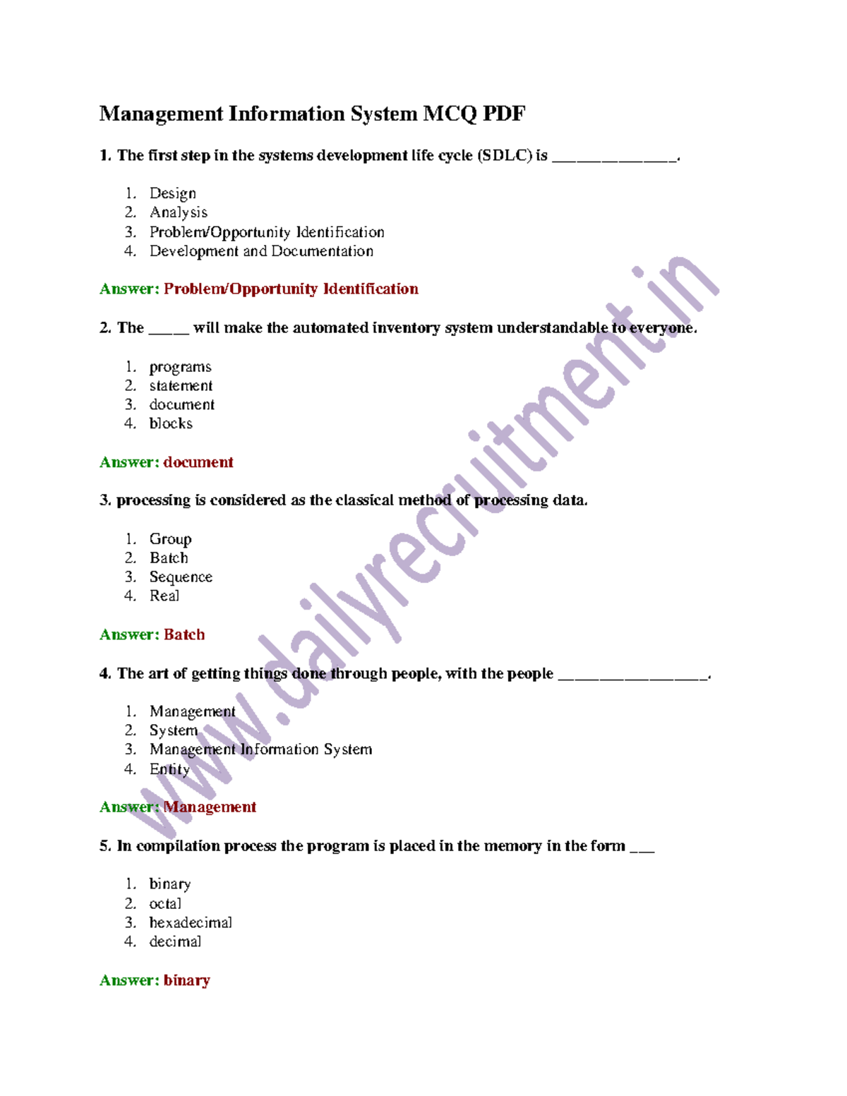 Management Information System MCQ Questions and Answer PDF Download ...