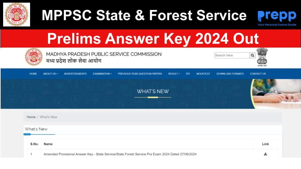 MPPSC State and Forest Service Prelims Answer Key 2024 Out; Download PDF