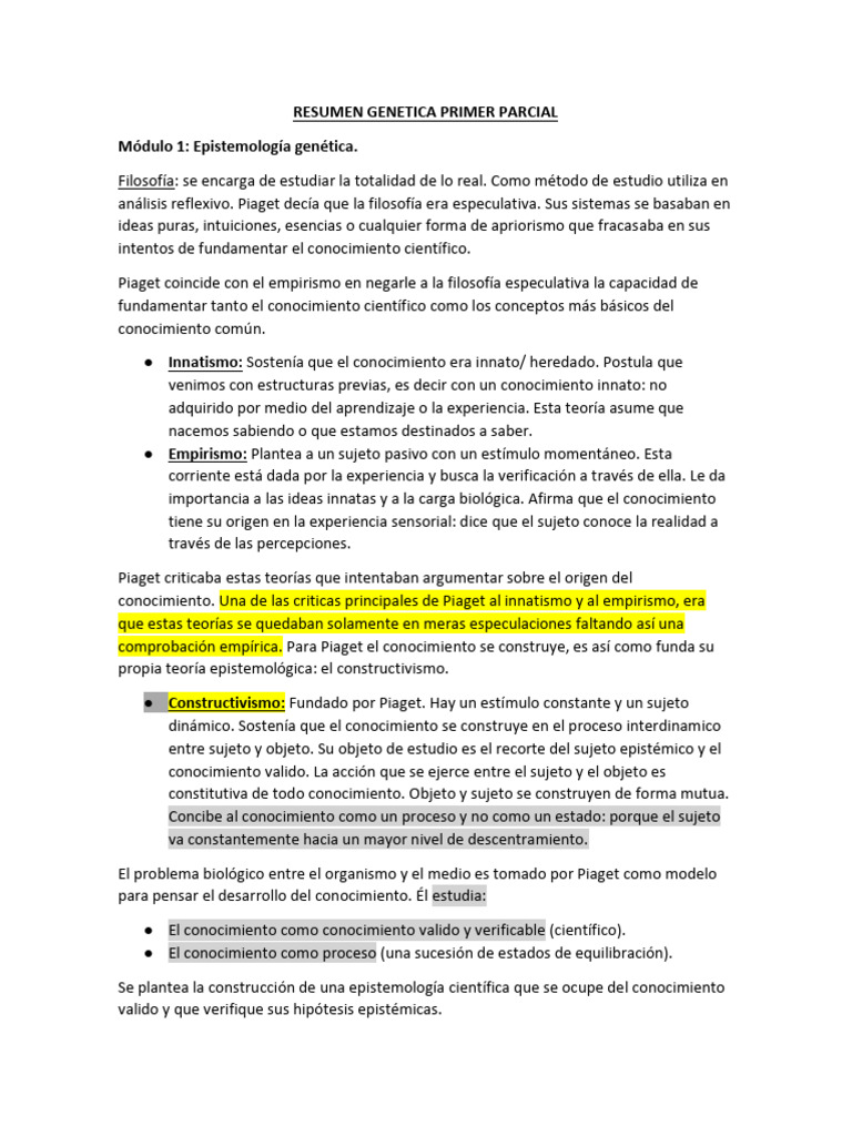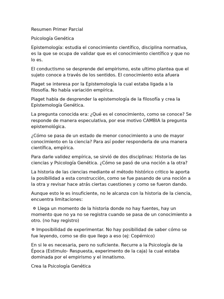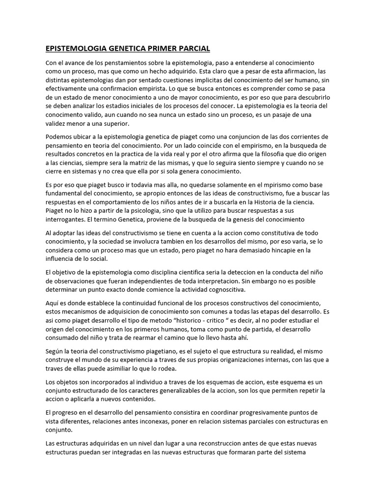 Epistemologia Genetica Primer Parcial | PDF