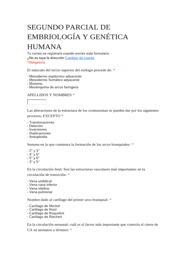 Segundo Parcial de Embriología y Genética Humana | PDF