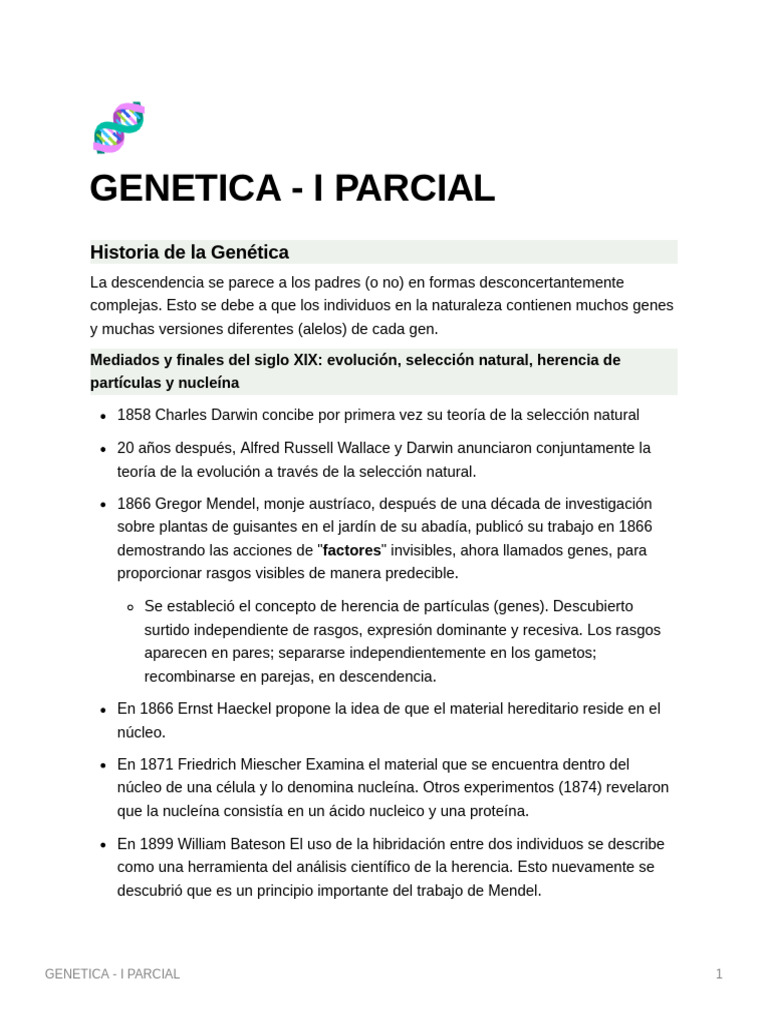 clases 1 y 2 parcial 1 genética | Haruko study | uDocz