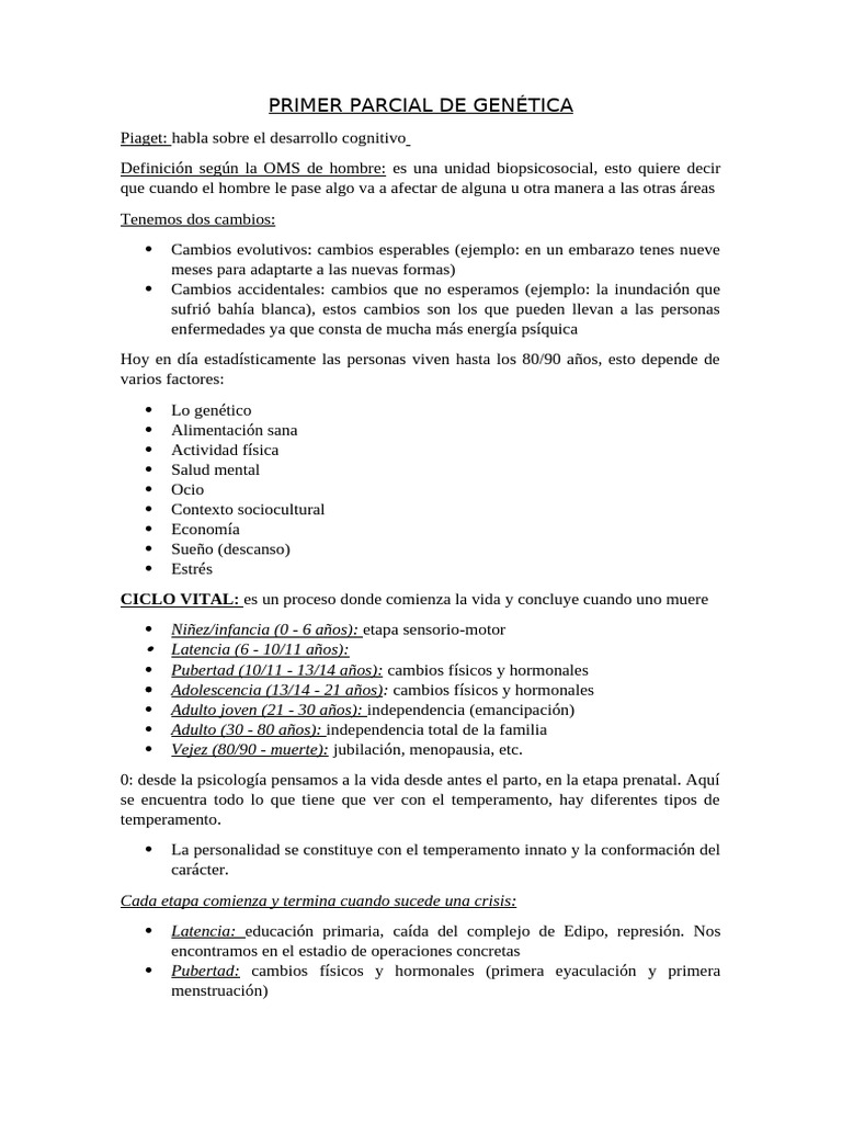 1º Parcial Genética | PDF | Desarrollo cognitivo | Sicología