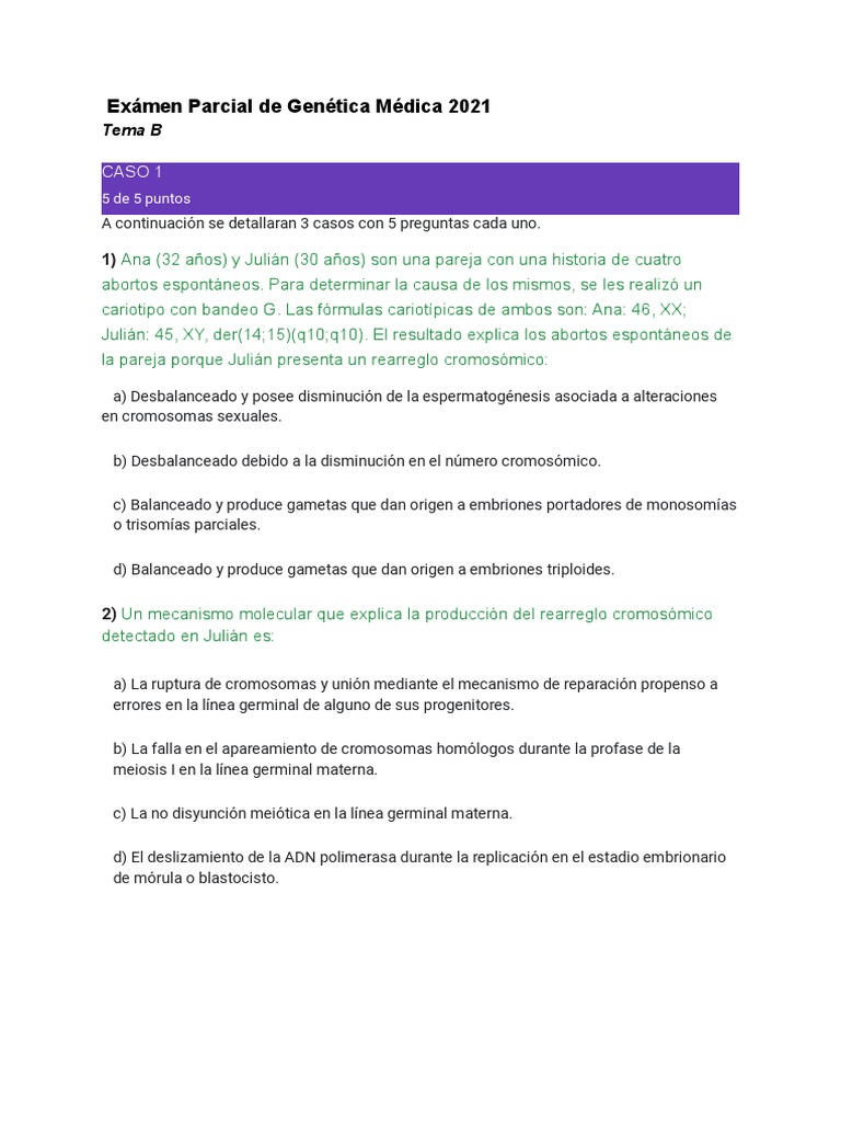 Examen Parcial de Genética Médica 2021 | PDF | Cromosoma | Genoma
