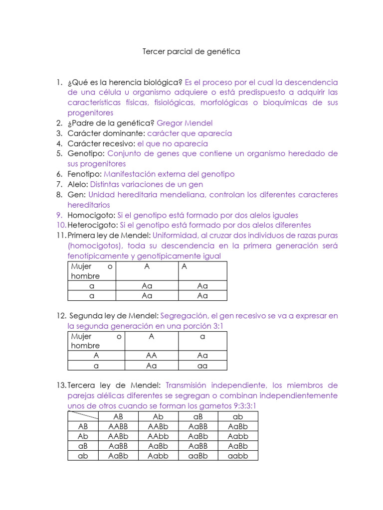 Genética parcial - Apuntes de Genética - Docsity