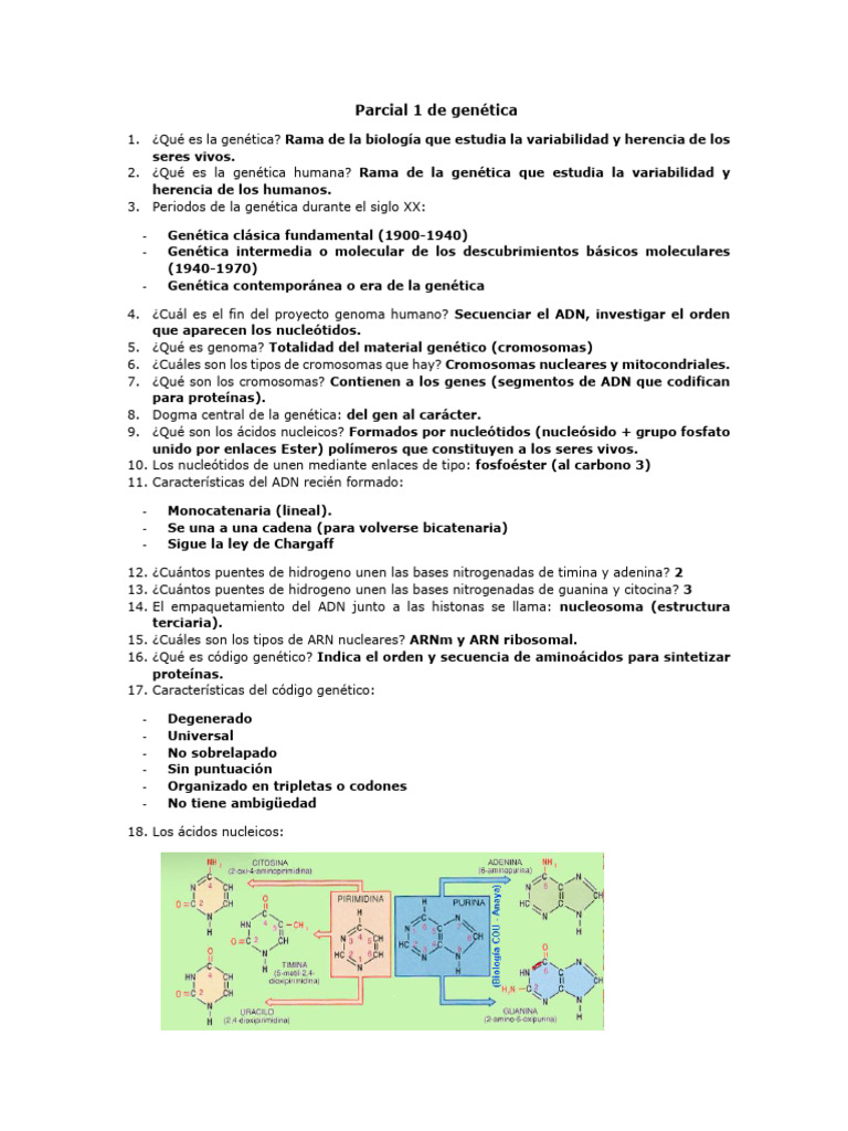 Parcial 1 de Genética | PDF | Adn | Rna