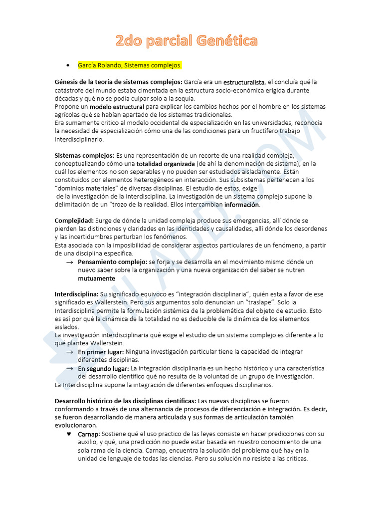 2do Parcial Genetica | PDF | Sicología | Sistema