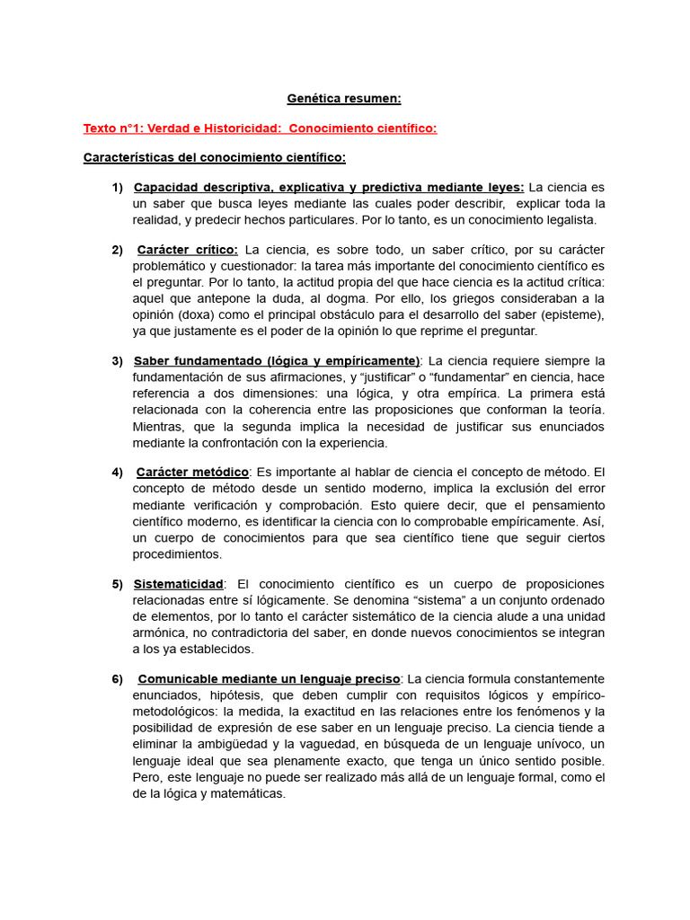 Resumen Genetica Primer Parcial | PDF | Conocimiento | Método científico