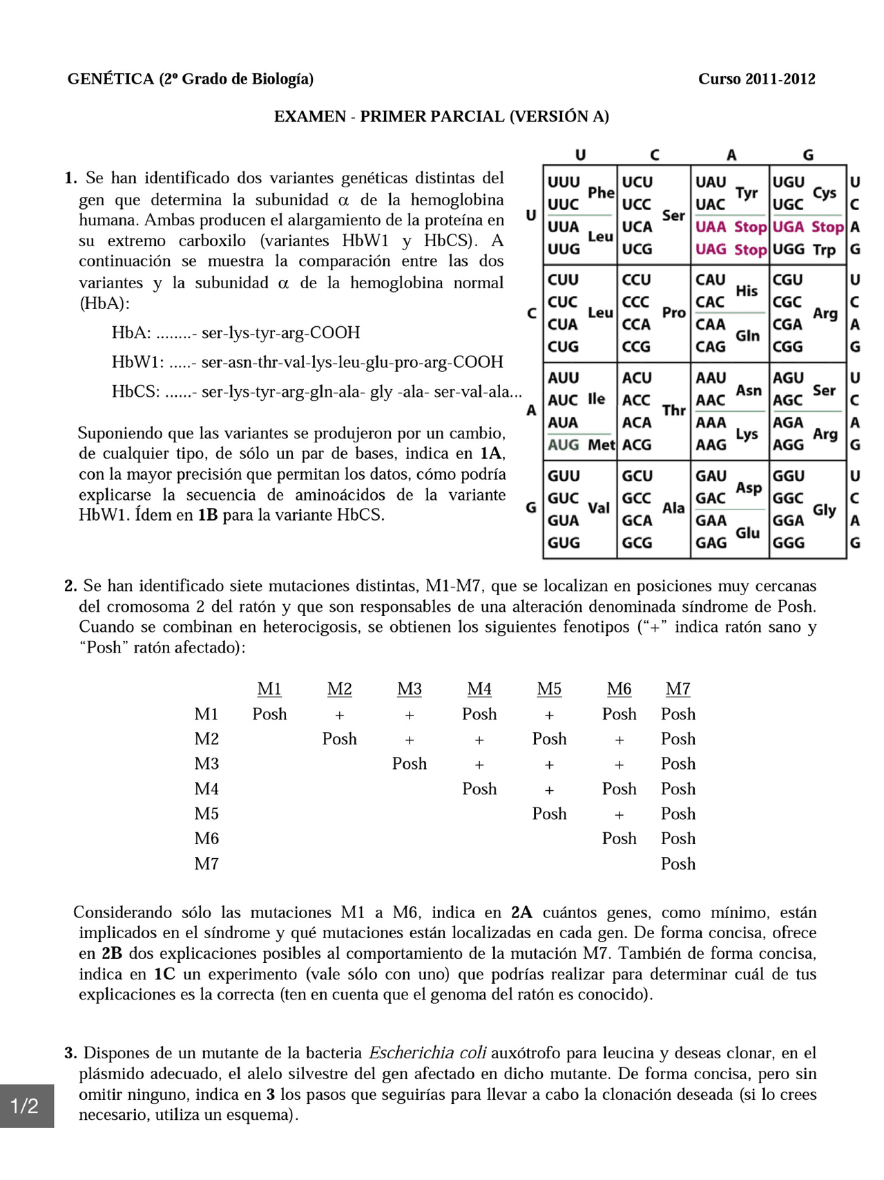 Examen Parcial de Genética - 01-11-2021 Tema A | PDF | Alelo | Mutación