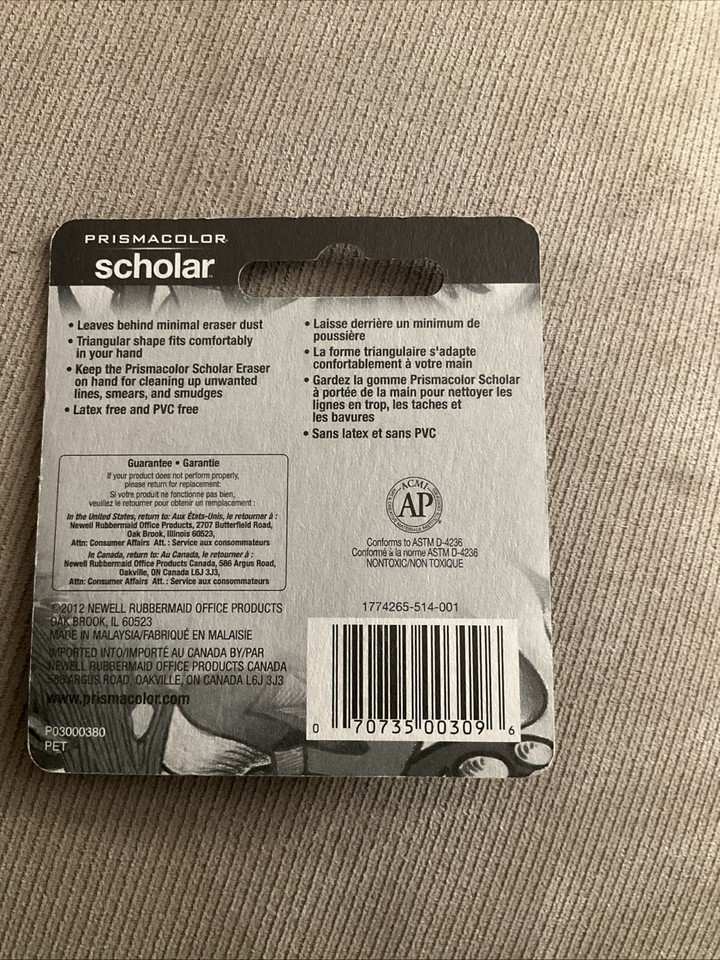 Prismacolor 1774265 Scholar Latex-Free Eraser, 1-Count | eBay