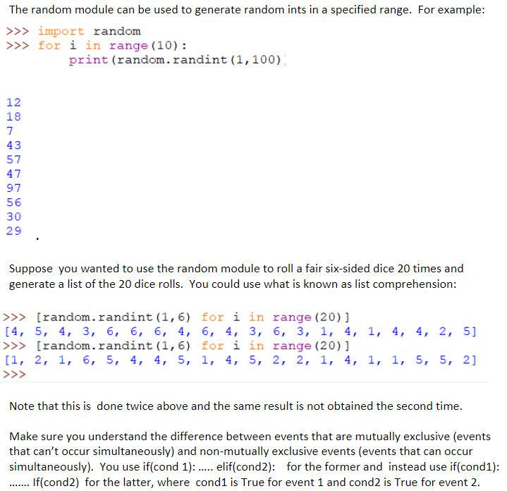 Solved The random module can be used to generate random ints | Chegg.com