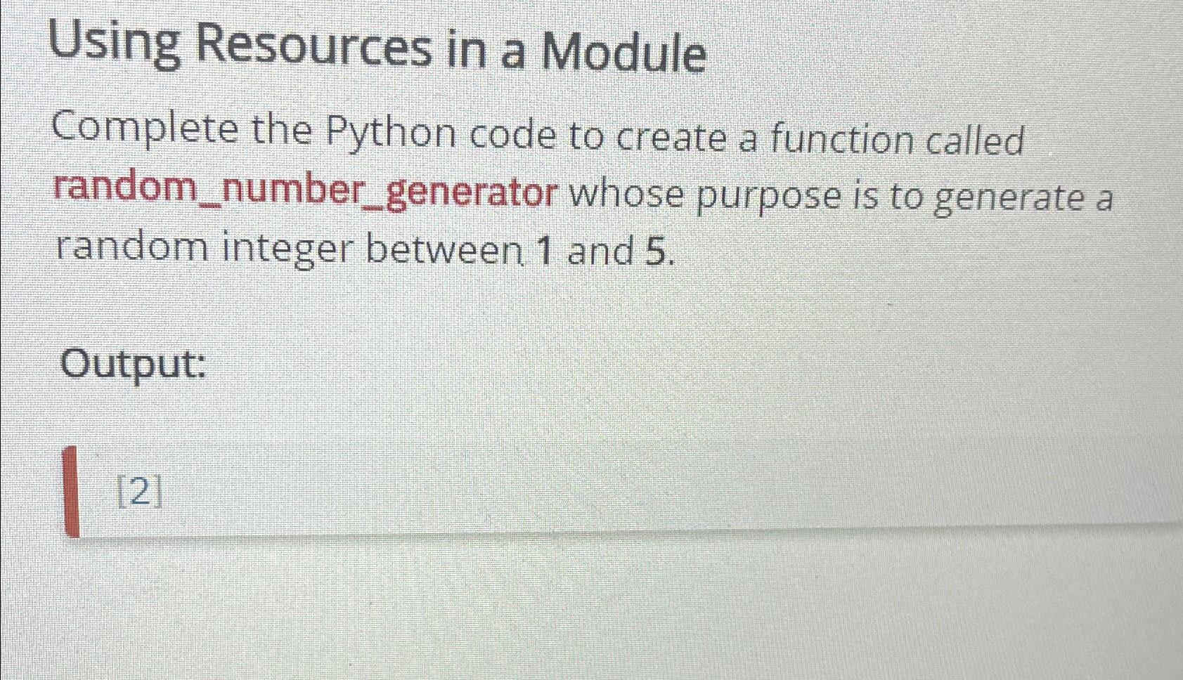 Solved Python module 'random' generates a random number | Chegg.com