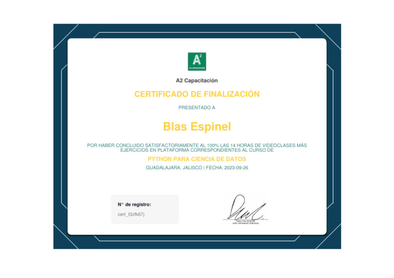 Certificado Curso Python Ciencia de Datos | PDF