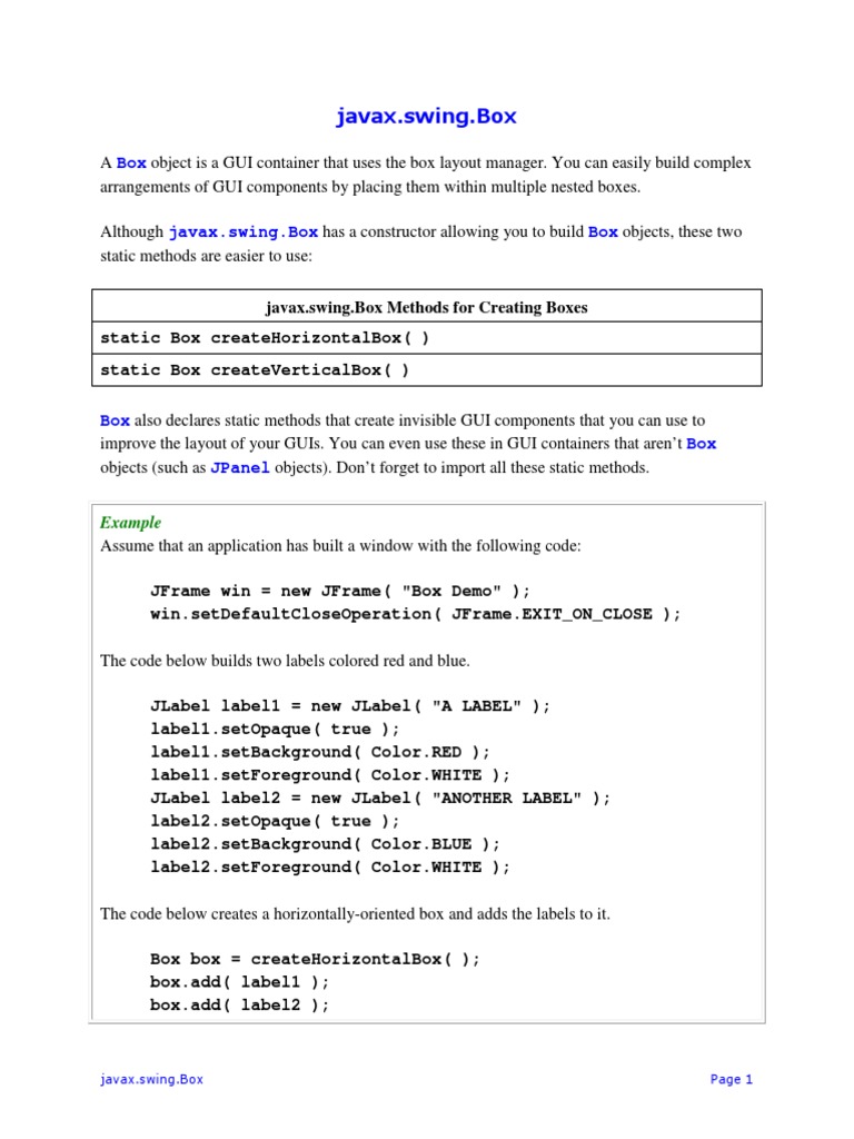 09javax Swing Box | PDF | Java (Programming Language) | Object Oriented ...