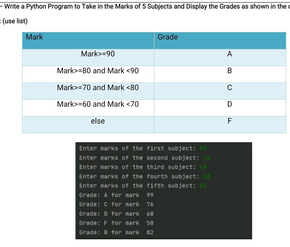 Write A Python Program To Find Average And Grade For Given Marks ...