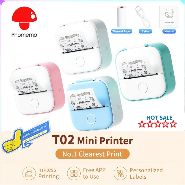 PHOMEMO T02 MINI Pocket Bluetooth Thermal Printer Inkless Wireless ...