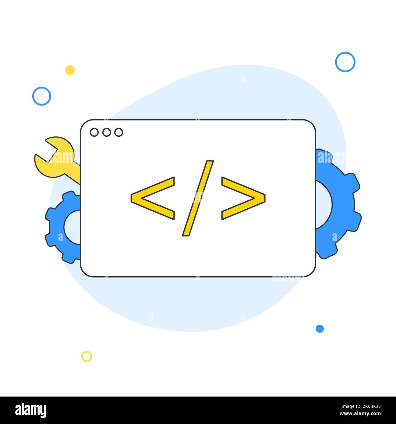3D Coding language development with gear and web UX-Ui interface icon ...
