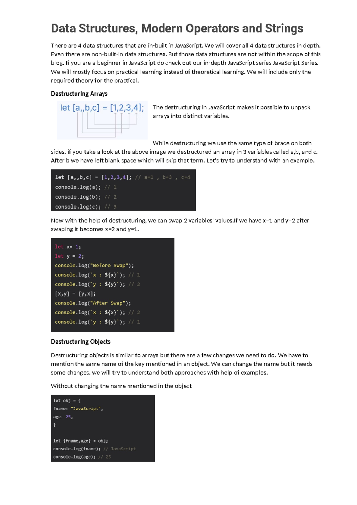 Data Structures - Notes on JavaScript Operators and Concepts - Studocu