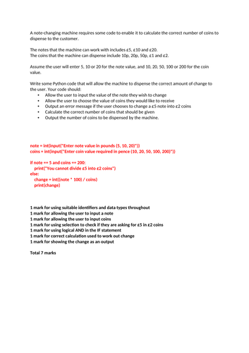 GCSE AQA Exam style Python Question 7 | Teaching Resources