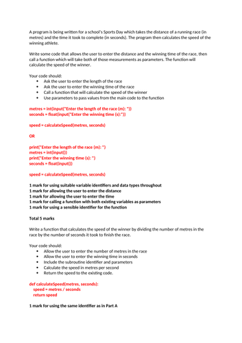 GCSE AQA Exam style Python Question 2 | Teaching Resources
