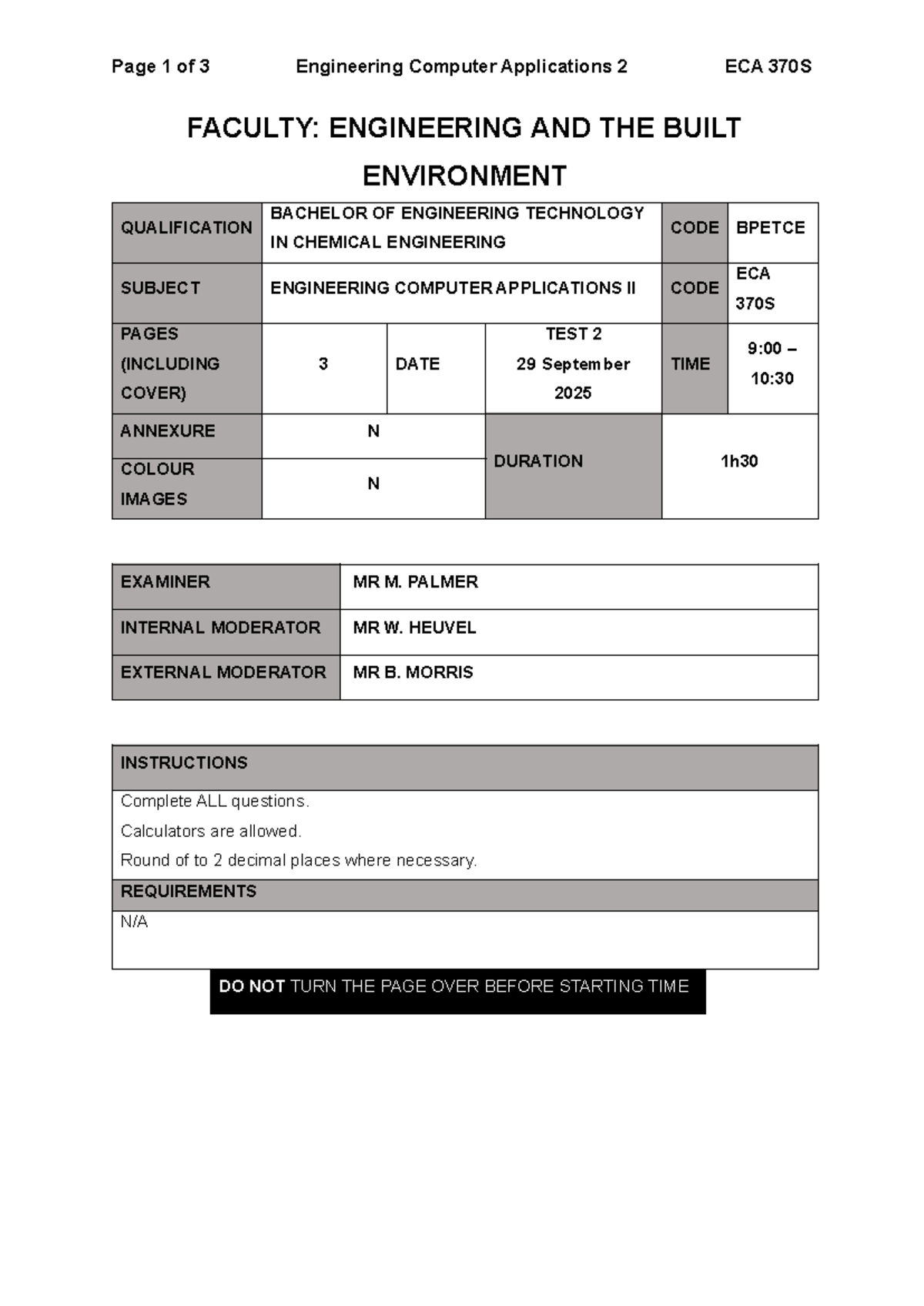 ECA 370S 2025 Engineering Computer Applications II Test 2 Questions ...