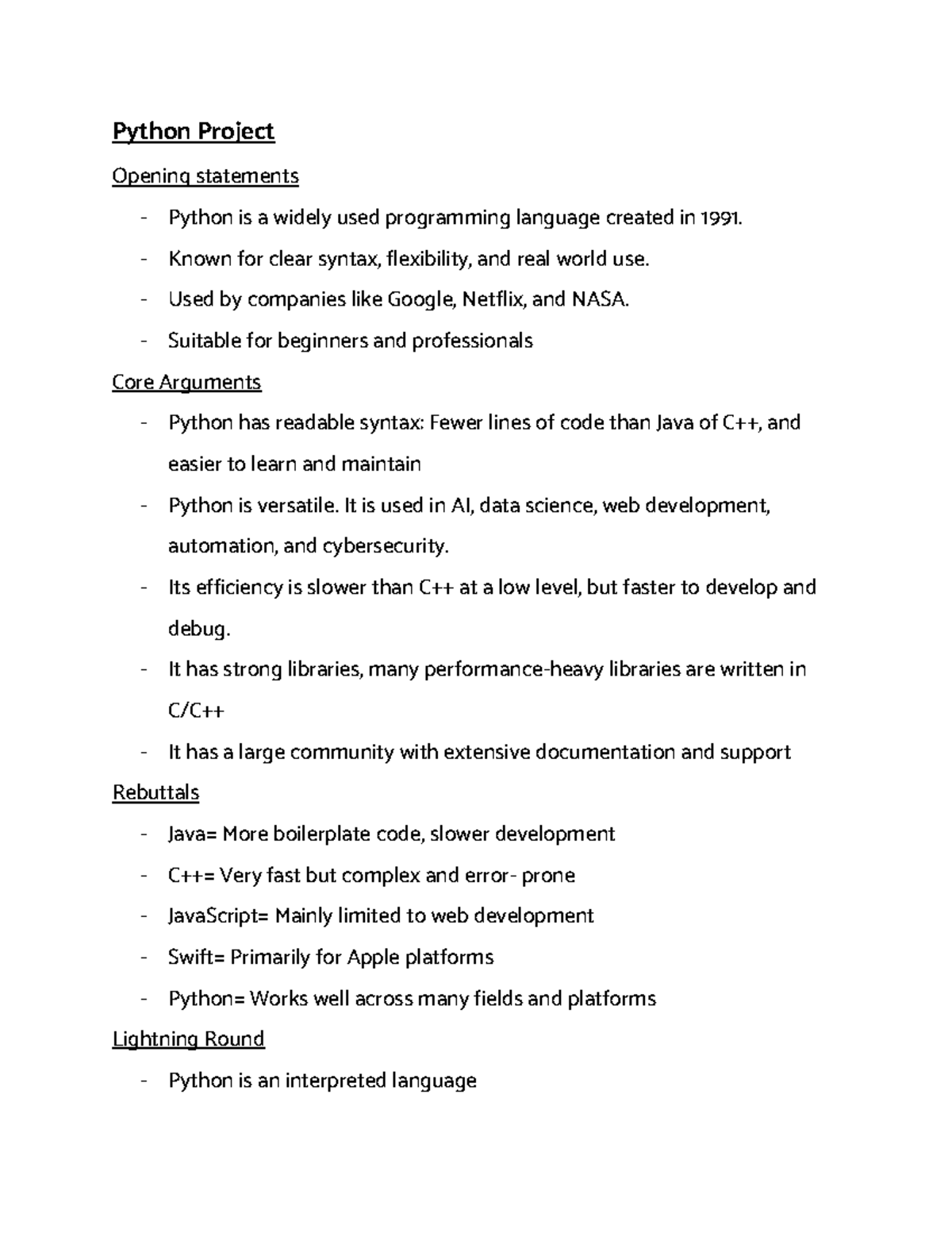 CS - Unit 5: Python Project Opening Statements and Core Arguments - Studocu