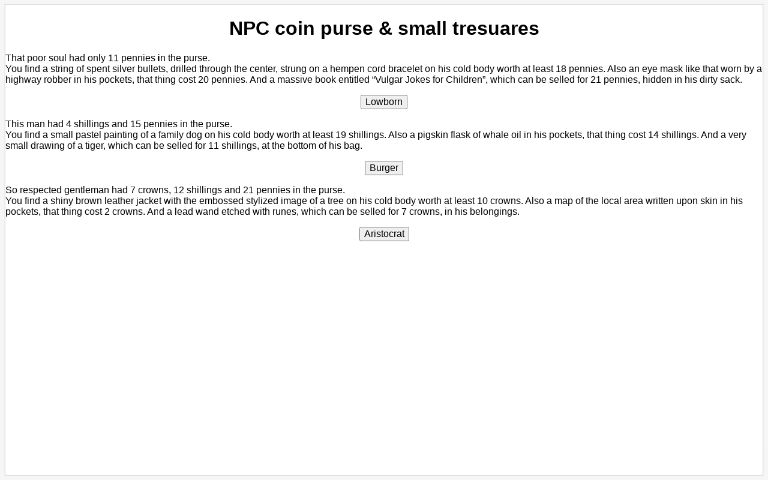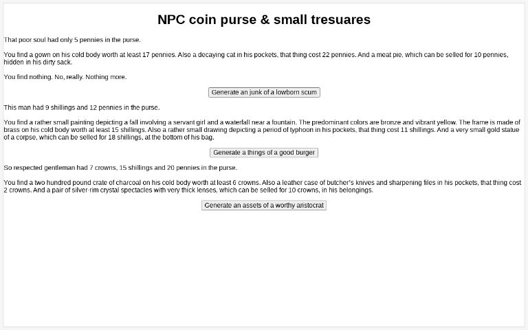 NPC coin purse & small tresuares ― Perchance Generator
