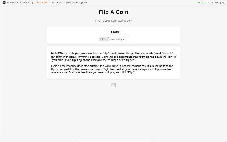 Based on this image's title: “Coin Flipper ― Perchance Generator”