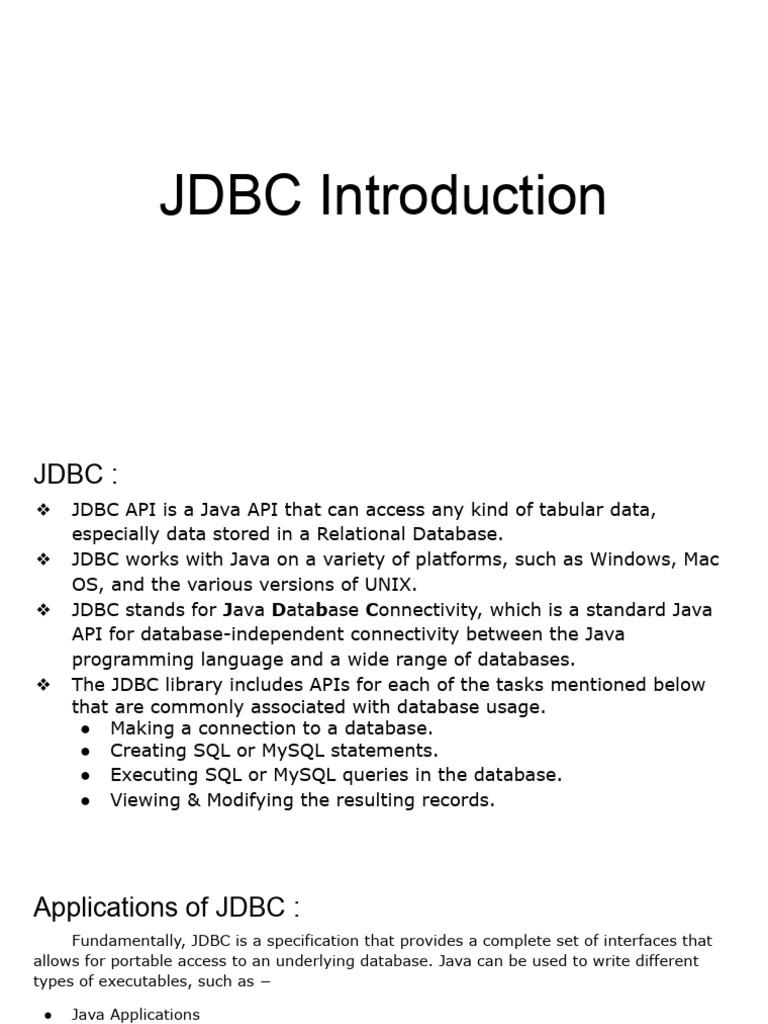 JDBC Introduction | PDF | Databases | Software
