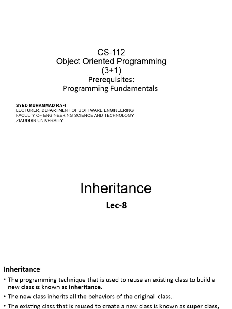 OOP Lec 8 (Inheritance) | PDF | Inheritance (Object Oriented ...