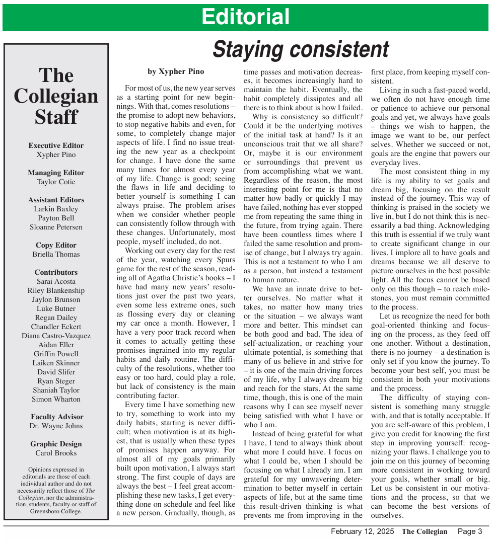 The Collegian – For the students, by the students.