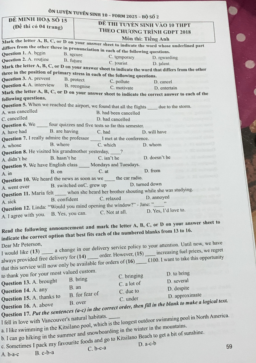 Giải quyết:ÔN LUyệN TUyểN SiNH 10 - foRm 2025 - bộ số 2 Đề minh hoạ số ...