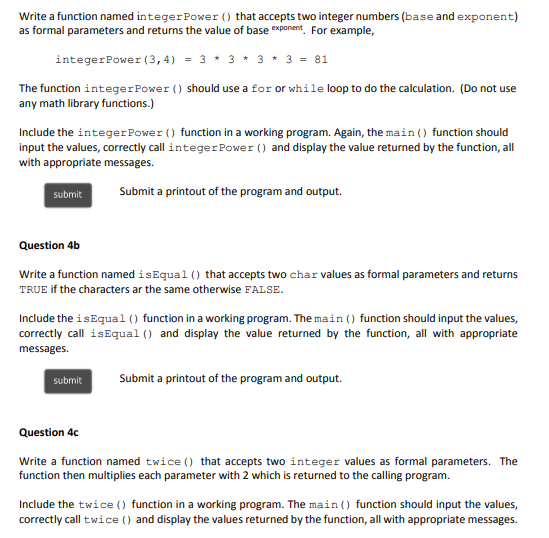 Solved Write a function named integer Power () that accepts | Chegg.com
