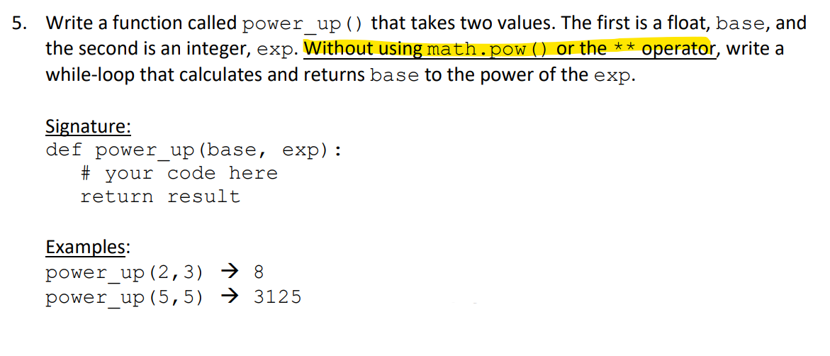 Solved 5. Write a function called power up () that takes two | Chegg.com