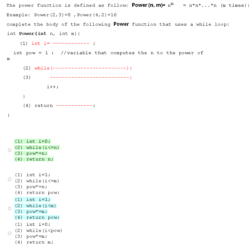 Solved 3.1 The following C function computes the power ab, | Chegg.com