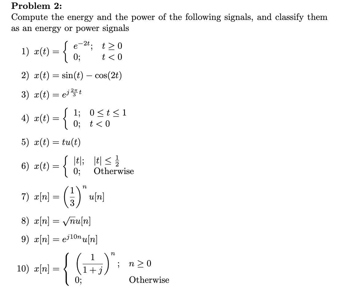 Solved Problem 2: Compute the energy and the power of the | Chegg.com