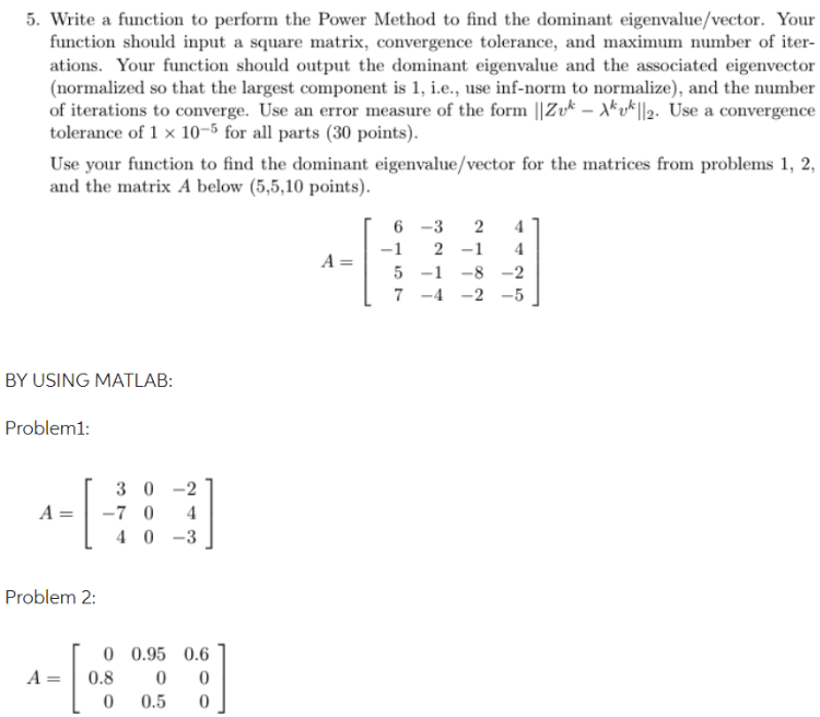 Solved (a) Use the Power Method MATLAB code supplied to find | Chegg.com