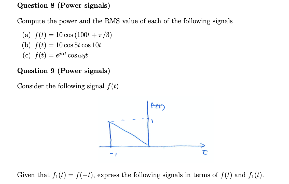 Solved Question 8 (Power signals) Compute the power and the | Chegg.com