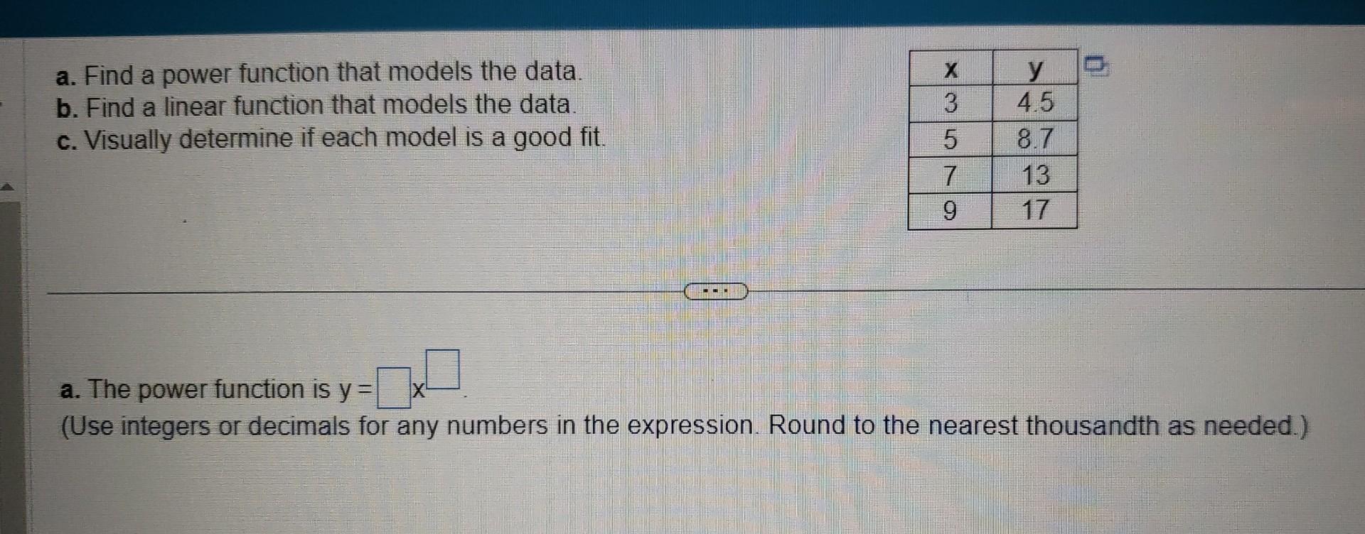 Solved a. Find a power function that models the data. b. | Chegg.com