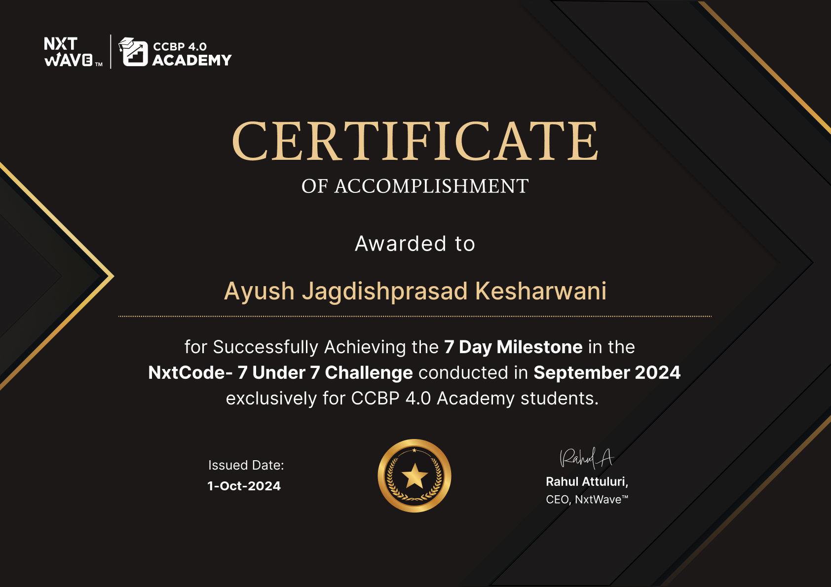 Ayush Kesharwani - Fellow at NxtWave's CCBP 4.0 Academy @nxtwave _tech ...