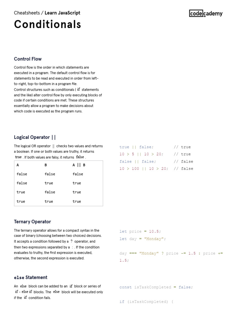 Learn JavaScript Conditionals Cheatsheet Codecademy.pdf - Cheatsheets ...