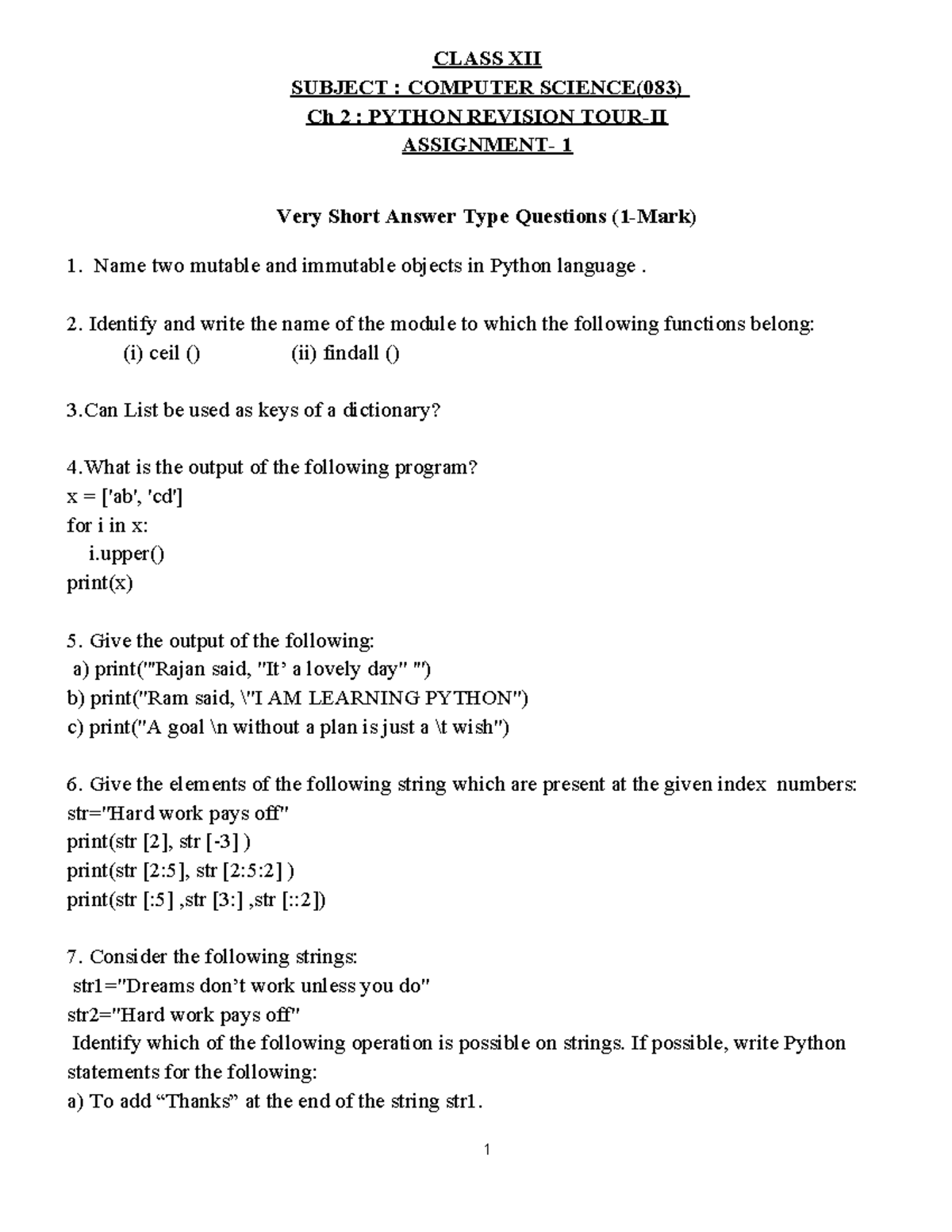 Class XII CS(083) Ch 2: Python Revision - Short Answer Qs - Studocu