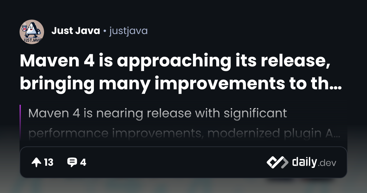 Maven 4 is approaching its release, bringing many improvements to the ...